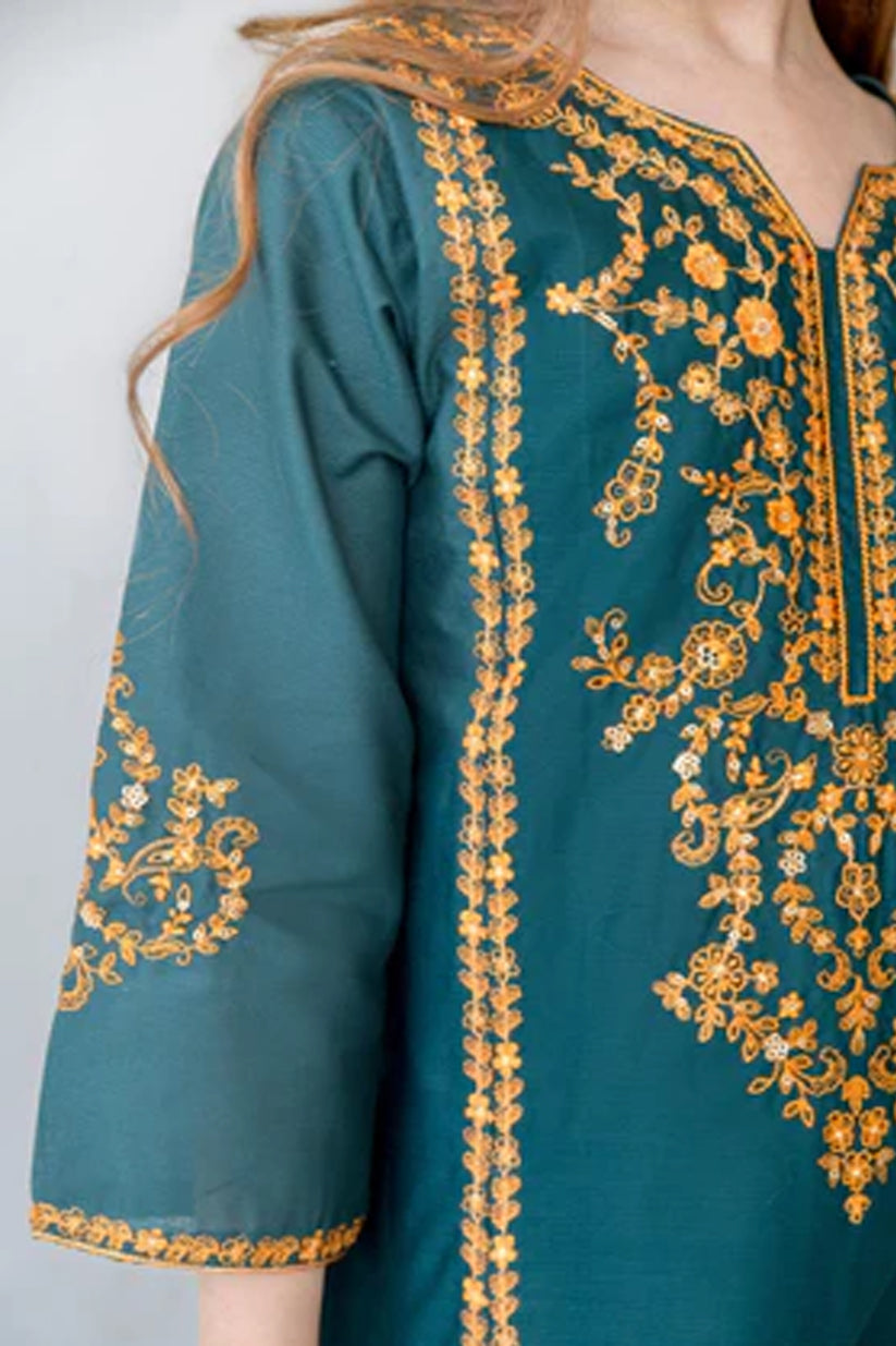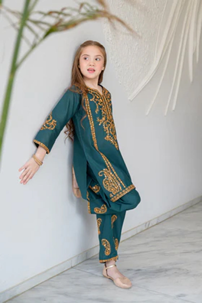 Featuring a fresh teal color with subtle embroidery, this set offers a neat and elegant look for casual outings, family gatherings, and summer days. Lightweight and easy to wear, Hanaa is designed to keep your little one comfortable while looking graceful.